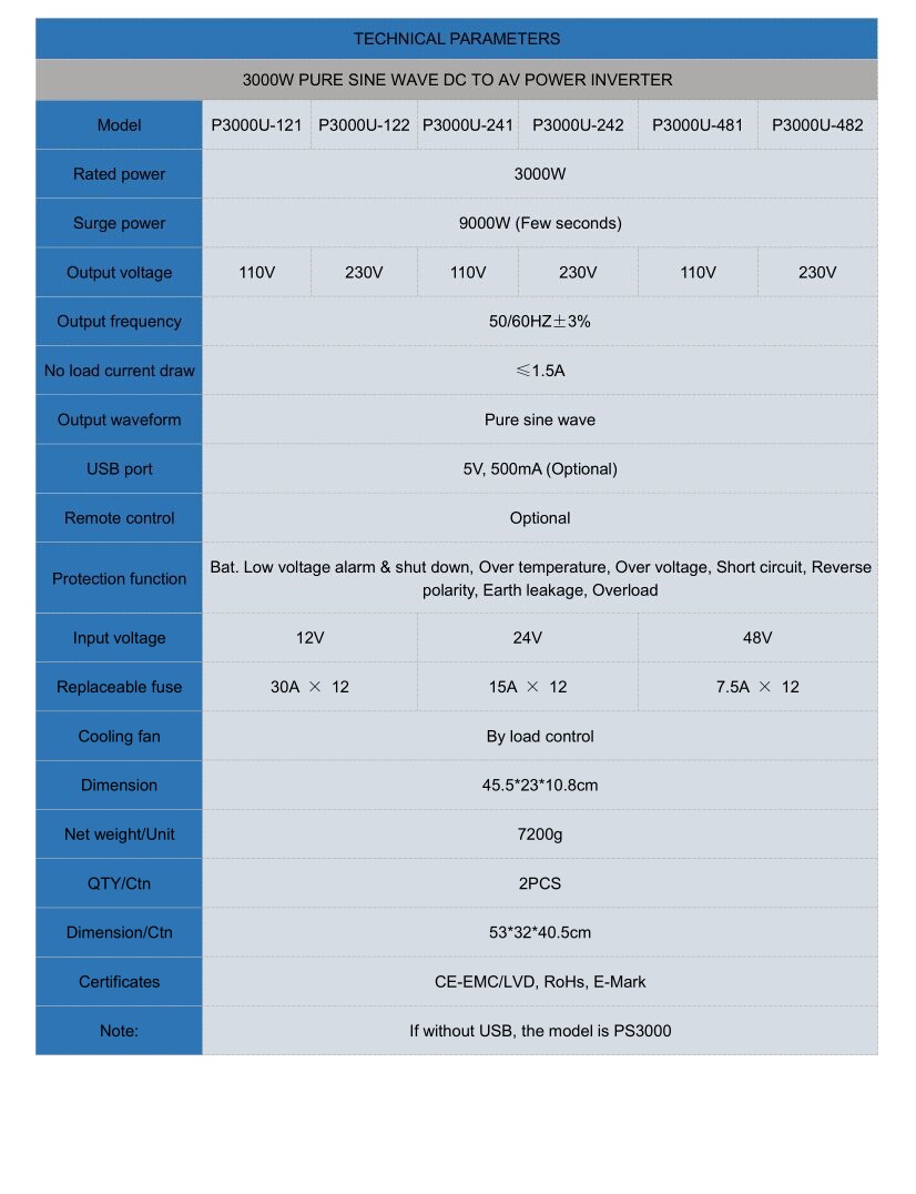 3000W Sine Wave Sine DC għal AC Power Inverter